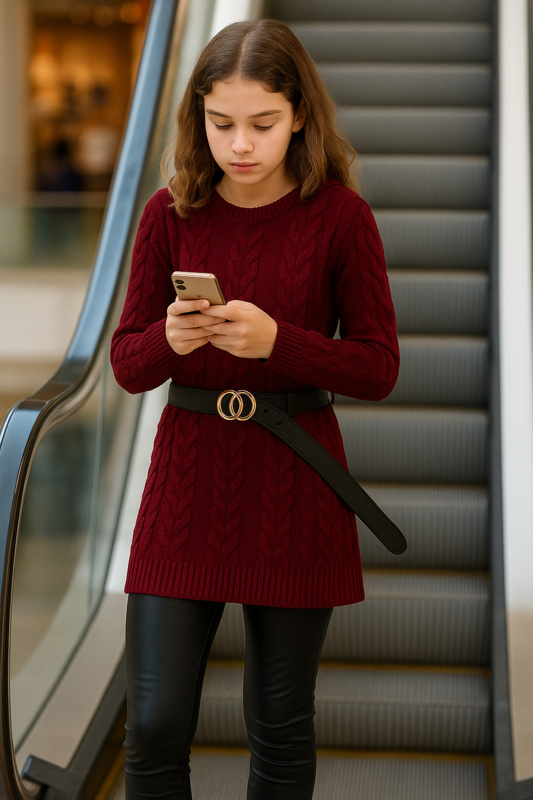 Gebreide jurk met ceintuur