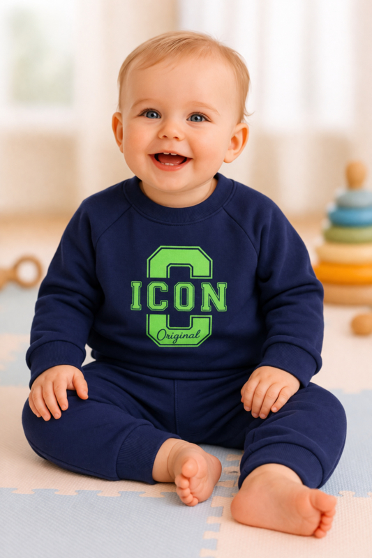 Frisse baby set met stoere neon “ICON” print, gemaakt van zachte stretchstof voor ultiem comfort en een trendy look.