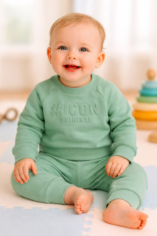 OverzichtStijlvolle baby set met subtiele 3D “#ICON ORIGINAL” print, gemaakt van zachte comfortabele stof voor een moderne en luxe uitstraling.