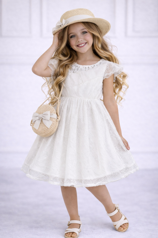Jurkje van kant met parels en mooie schuine roesel