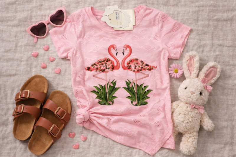 OverzichtFlamingo shirt met parels en schuine punt aan voorpand