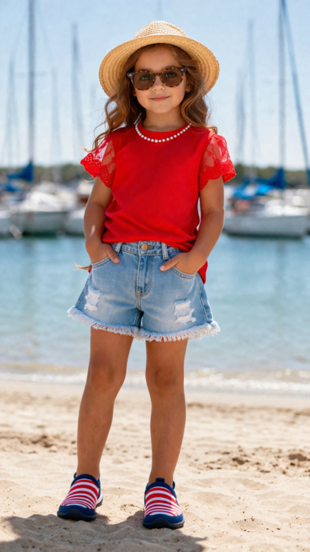 Top met parelhals en jeansshort