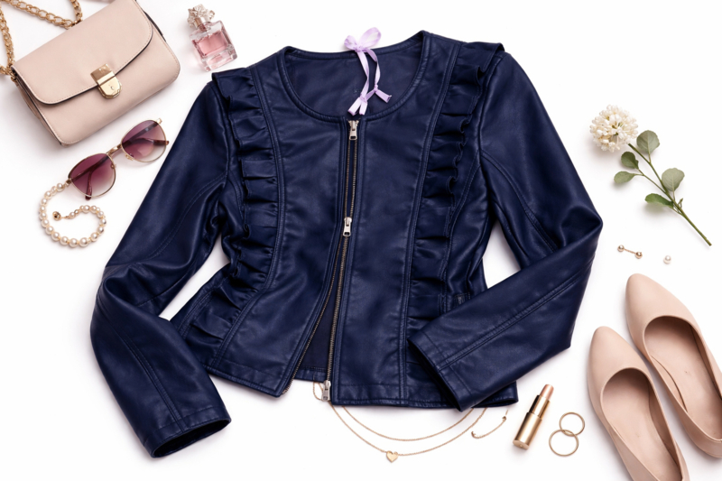 ZM5095 jacket navy (7pcs) nog maar enkele pakkettenSuperhip lederlook jasje met roezel