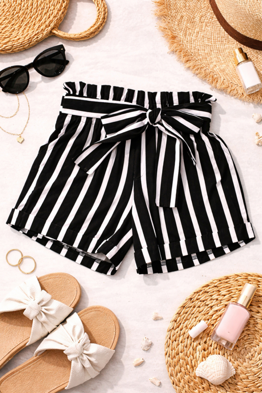 FRHS0313 pants ZWART (6pcs)Leuke broek met strik ceintuur