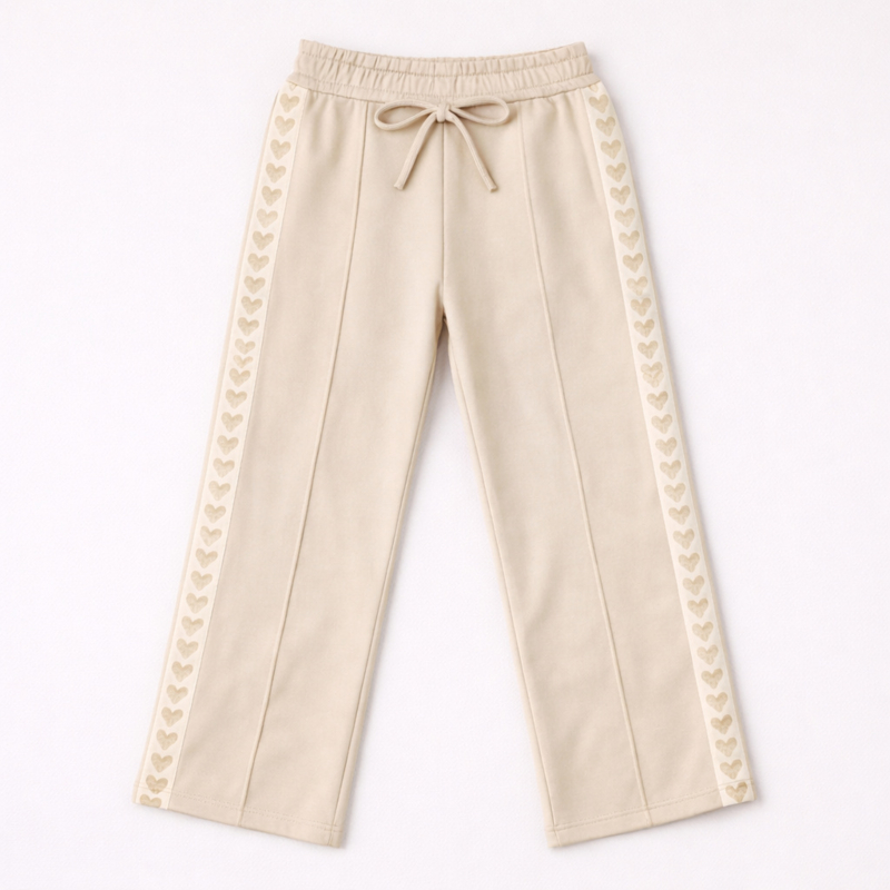 FRKU33996 broek BEIGE ( 6pcs)Broek met mooie bies ( hartjes) en naad voor